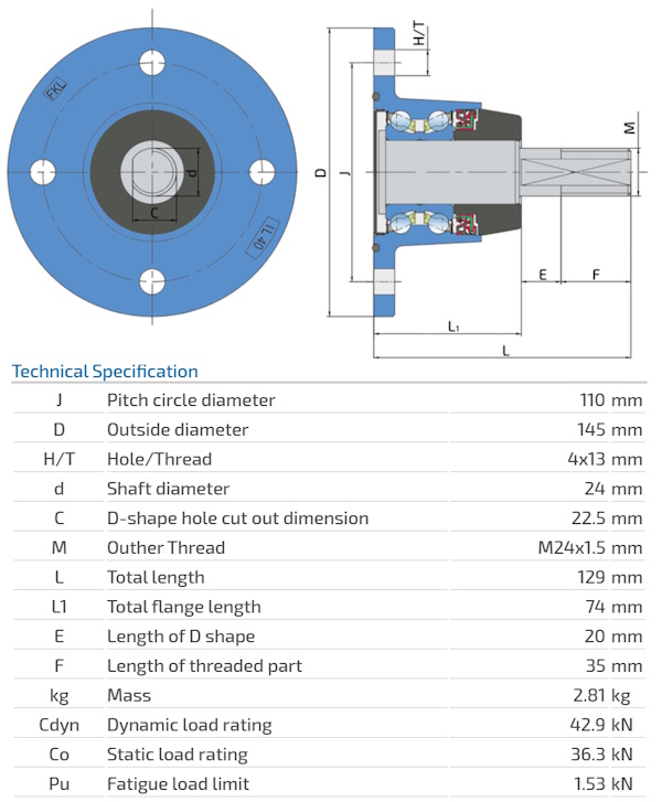 IL40-110/4H-M24x1.5 Integrated Flange, Maintenance Free Bearing Disc Harrow POTTINGER 9755.02.140.0