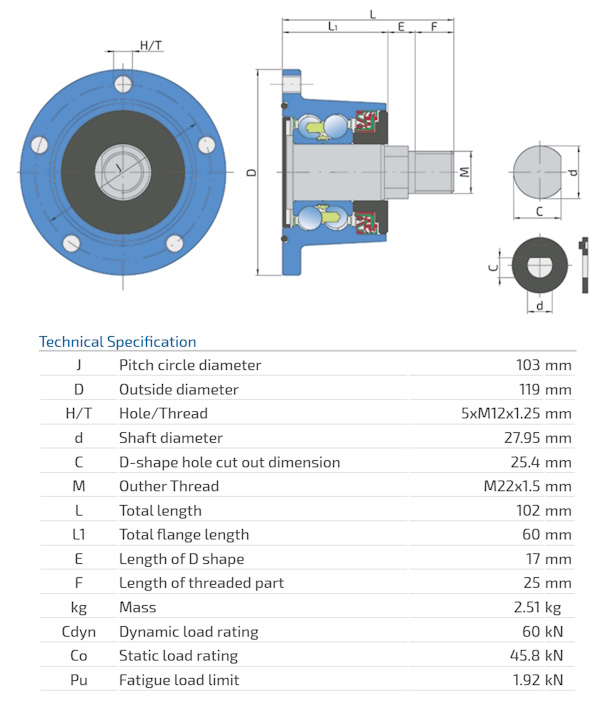 IL50-103/5T-M22 Integrated Flange, Maintenance-Free Bearing For Independent Discs Application: Disc Harrow