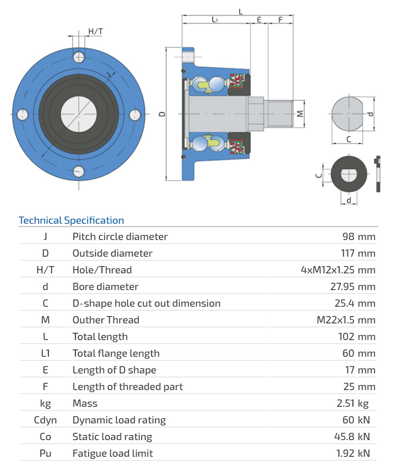 IL50-98/4T-M22 Integrated Flange, Maintenance-Free Bearing For Independent Discs Disc Harrow