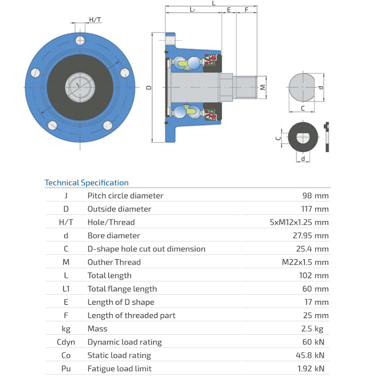 IL50-98/5T-M22 Integrated Flange, Maintenance-Free Bearing For Independent Discs Disc Harrow