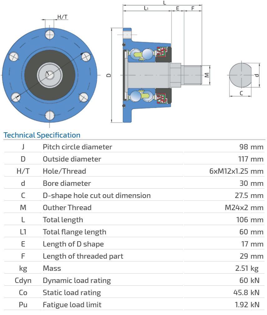 Integrated Flange, Maintenance-Free Bearing For Independent Discs by maschine manufacturer: - 750350 VOGEL NOOT - IL50-98/6T-M24 - BAA-0013