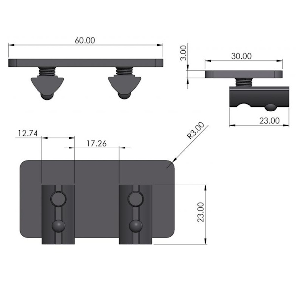 Plakans savienojums. Var savienot divus paralēlus profilus, kas atrodas viens otram blakus, kā arī perpendikulāri. vai arī izmantot konstrukcijas pagarināšanai profilus saliekot ar galiem.