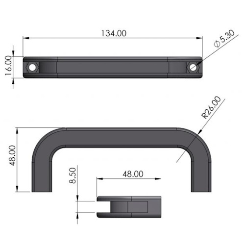 Materiāls - PA-GF poliamīds ar stikla šķiedru, melnā krāsā