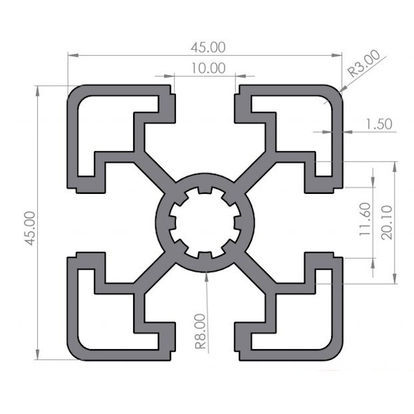 P4500A5 Profile 45x45LB slot 10, Custom Length - P45