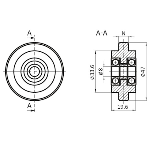 Šis rullītis ievietojas gropē un pa to ripo. Rullītim ir divi gultņi, tādēļ tos var slogot ar svaru.