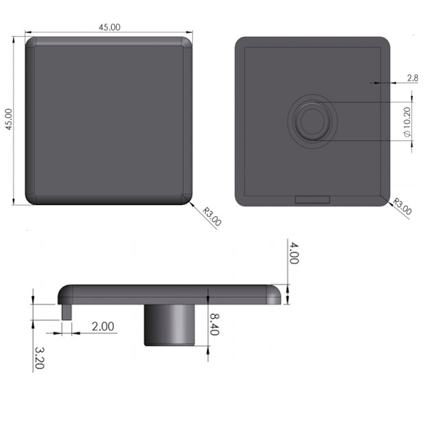 Materiāls - PA-GF poliamīds ar stikla šķiedru, melnā krāsā