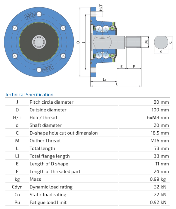 IL25-80/6T-M16-T The Bearing Solution For Seeding Machines, Integrated Flange Front cutting disc Bednar 040354