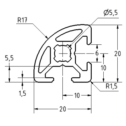 P2000E4 Profile R20 90° slot 6, 6040mm - P20