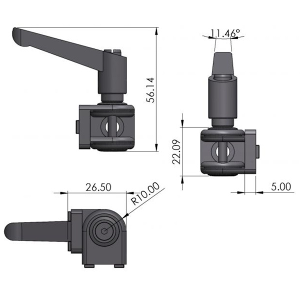 P2004A2 Profile angle joint with clamping lever 20 B-type Slot 6 - P20