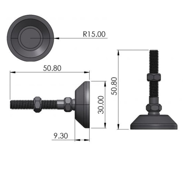 Izmērs - D30x45 (kopējais augstums 50.8mm, vītnes garums 35mm)