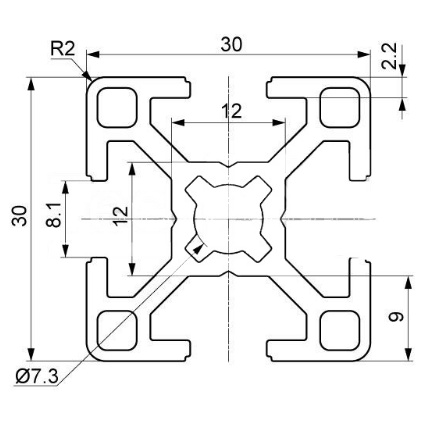 P3000A5 Profile 30x30B Slot 8, Custom Length - P30
