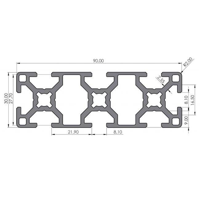 P3000C5 Profile 30x90B slot 8, Custom Length - P30