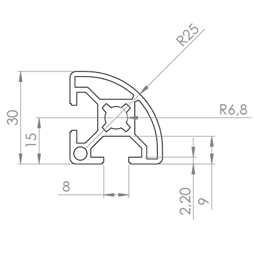 P3000E4 Profile R30 90° slot 8, Custom Length - P30
