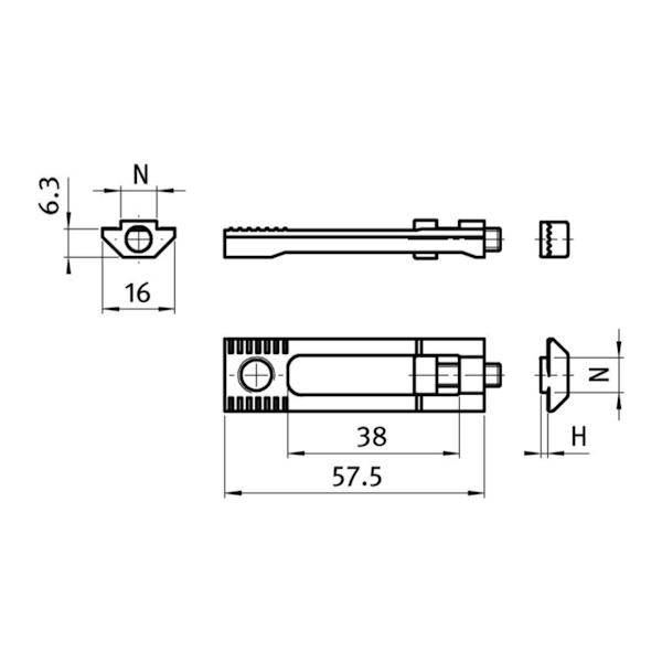 Izmēri 16x57.5x7.8mm (augstums, garums, platums)