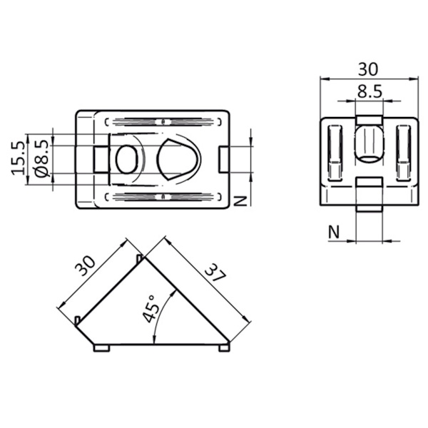 P3001C3 Angle Connector 45° B-Type slot 8 - P30 FATH