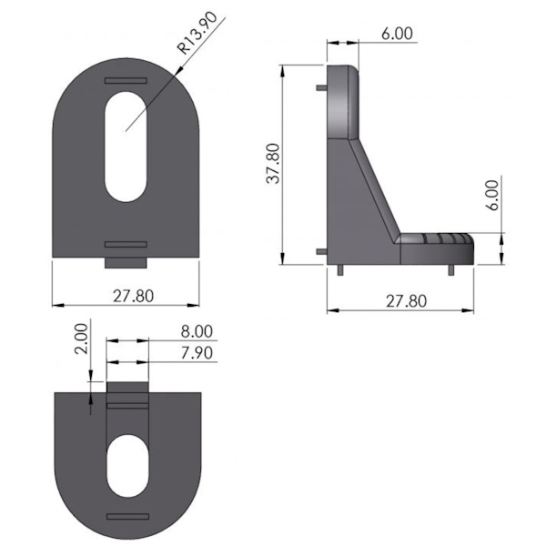 Izmēri 37.8x27.8x27.8mm