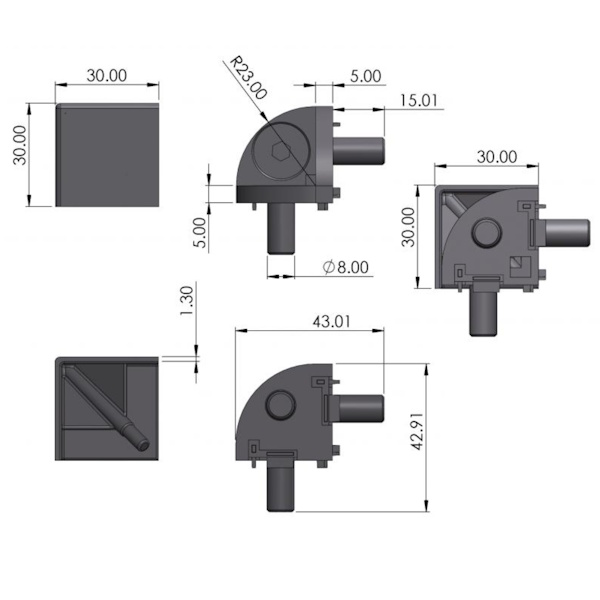 Šo stiprinājumu izmanto stūra savienojumā lai savienotu 3 profilus ar galiem 90 grādos.