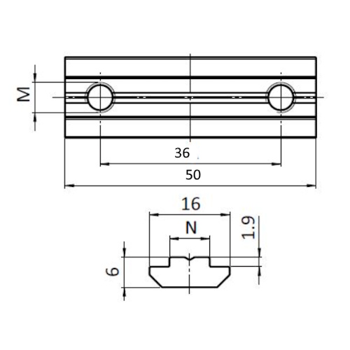 P3001F4 Profile Connector 50 B-Type slot 8 2xM6 - P30 FATH