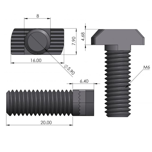Izmēri M6x20 8x16x24.5