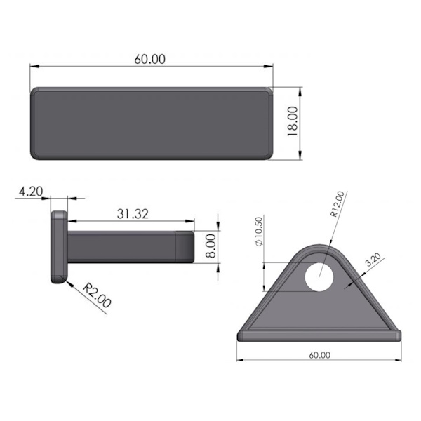 Materiāls - PA-GF poliamīds ar stikla šķiedru, melnā krāsā