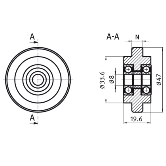 Šis rullītis ievietojas gropē un pa to ripo. Rullītim ir divi gultņi, tādēļ tos var slogot ar svaru.