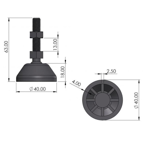 P3005A2 Līmeņošanas pēda D40 M8x60 - P30