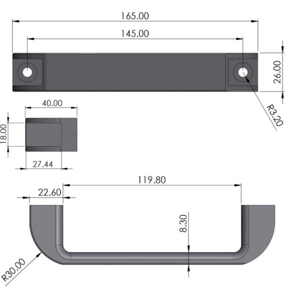 Materiāls - PA-GF poliamīds ar stikla šķiedru, melnā krāsā
