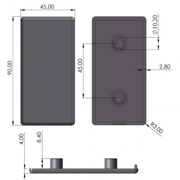Izmērs - 45x90x6/12.4mm
